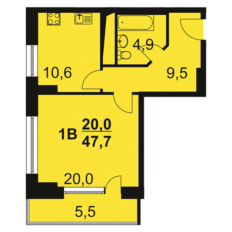 | Жилая: | 20.00 м2 |
