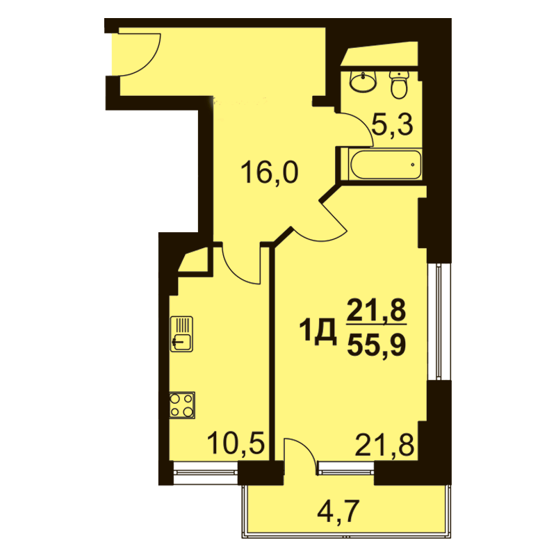 | Жилая: | 21.80 м2 |